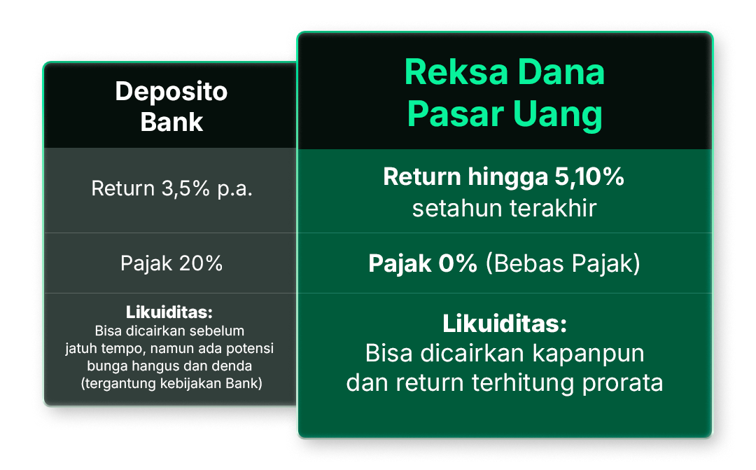 Net return historis up to +5,1% setahun. Reksa Dana Pasar Uang jadi pilihan untuk buat dana idle bertumbuh stabil.