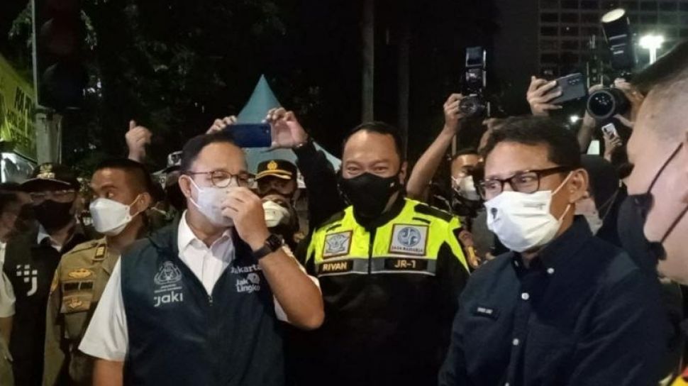 Gubernur DKI Jakarta Anies Baswedan bersama jajarannya ikut melakukan patroli di malam tahun baru 2022.