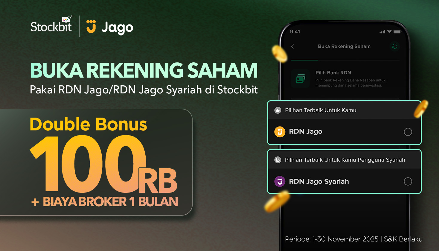 Bonus Rp100 Ribu + Free Biaya Broker 1 Bulan dari Stockbit dan Bank Jago
