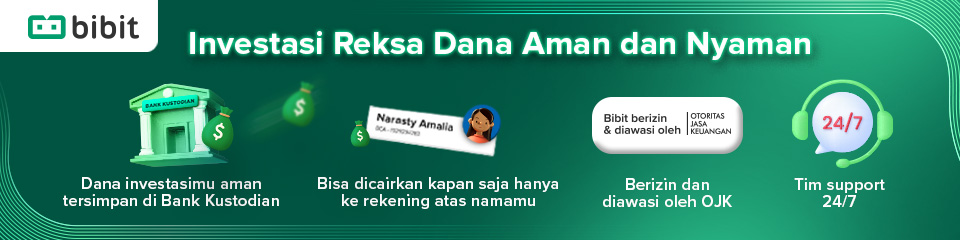 Email ini dikirim oleh PT Bibit Tumbuh Bersama, Agen Penjual Efek Reksa Dana (APERD) yang berizin dan diawasi oleh Otoritas Jasa Keuangan. Informasi di dalam email ini bersifat rahasia dan hanya ditujukan bagi investor yang menggunakan APERD PT Bibit Tumbuh Bersama dan menerima email ini. Dilarang memperbanyak, menyebarkan, dan menyalin informasi rahasia ini kepada pihak lain tanpa persetujuan PT Bibit Tumbuh Bersama. Reksa dana merupakan produk pasar modal dan bukan produk APERD. APERD tidak bertanggung jawab atas risiko pengelolaan portofolio yang dilakukan oleh Manajer Investasi. Semua investasi mengandung risiko dan adanya kemungkinan kerugian atas nilai investasi. Kinerja masa lalu tidak mencerminkan kinerja di masa depan. Kinerja historikal, keuntungan yang diharapkan dan proyeksi probabilitas disediakan untuk tujuan informasi dan ilustrasi.