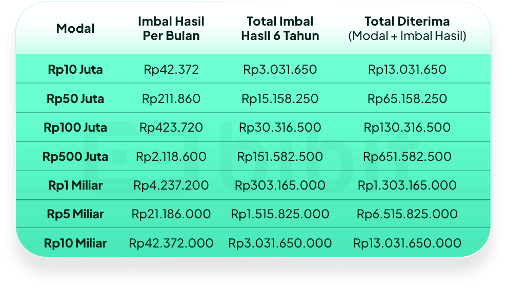 Tenor 6 Tahun | Imbal Hasil Fixed Rate 5,65% per Tahun |