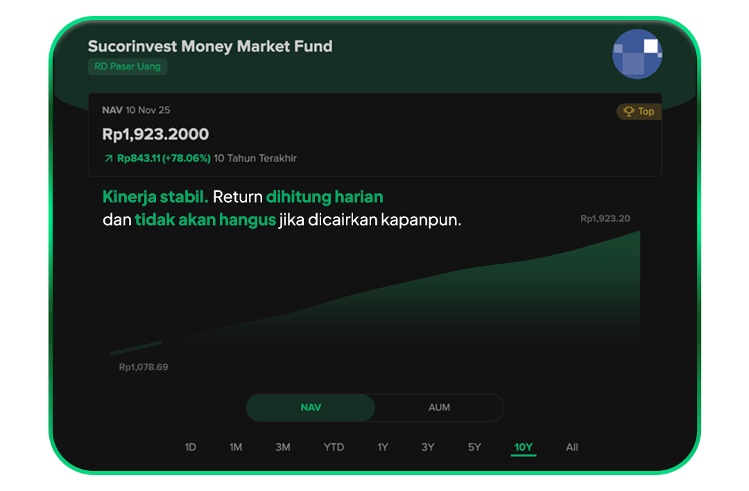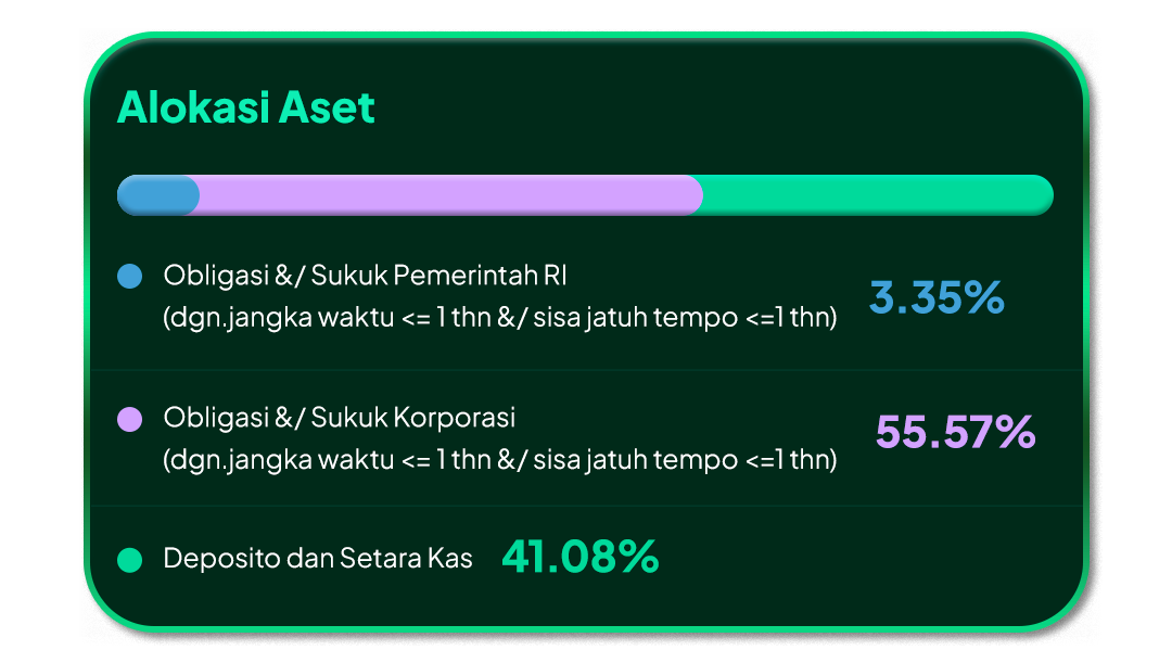 Mayoritas dana ditempatkan di deposito & obligasi jangka pendek, sehingga risikonya rendah tapi return tetap optimal. | Berdasarkan fund fact sheet Reksa Dana Sucorinvest Money Market Fund per Oktober 2025. |