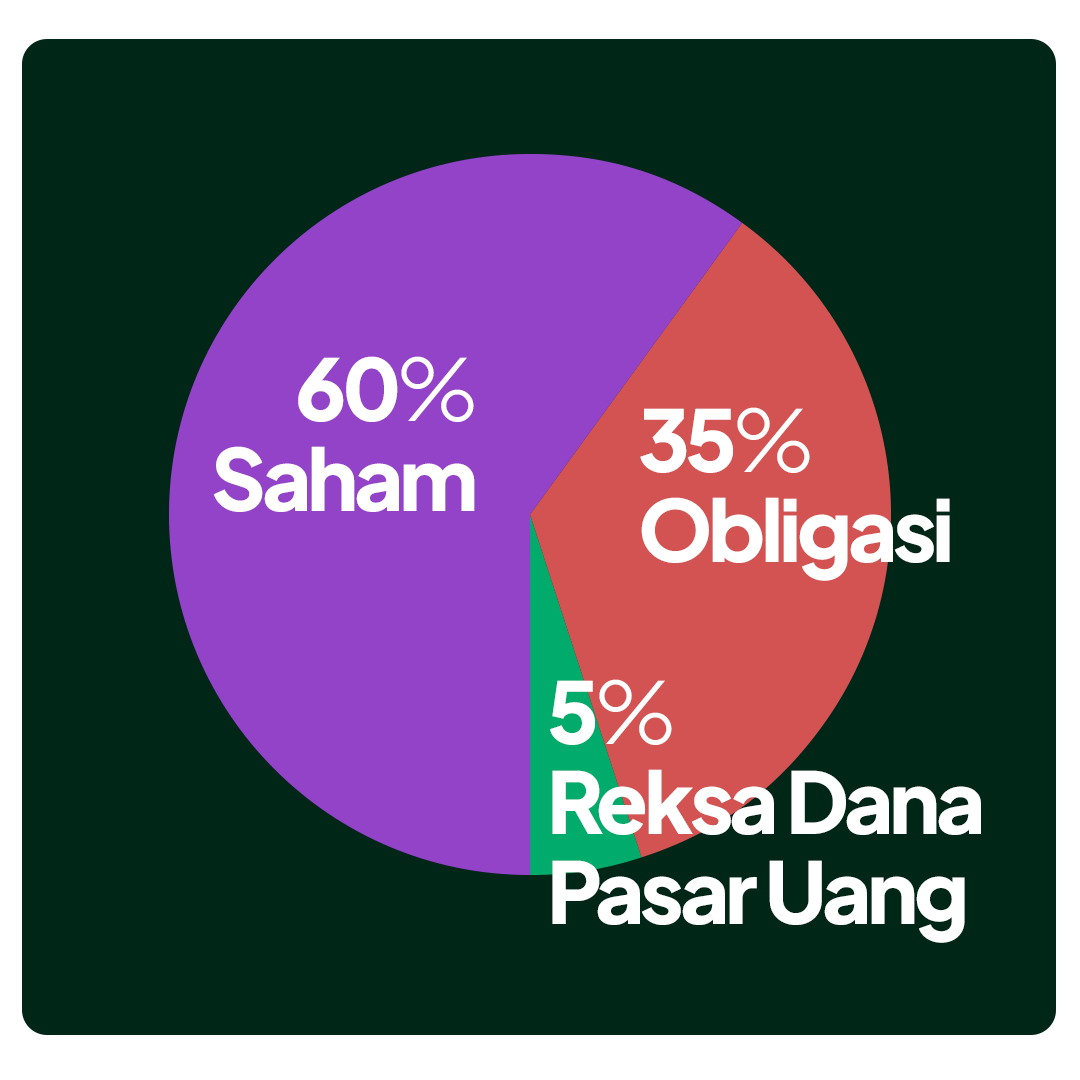 - 60% di saham, investasi dengan menggunakan uang dingin yang belum akan dipakai dalam waktu dekat.