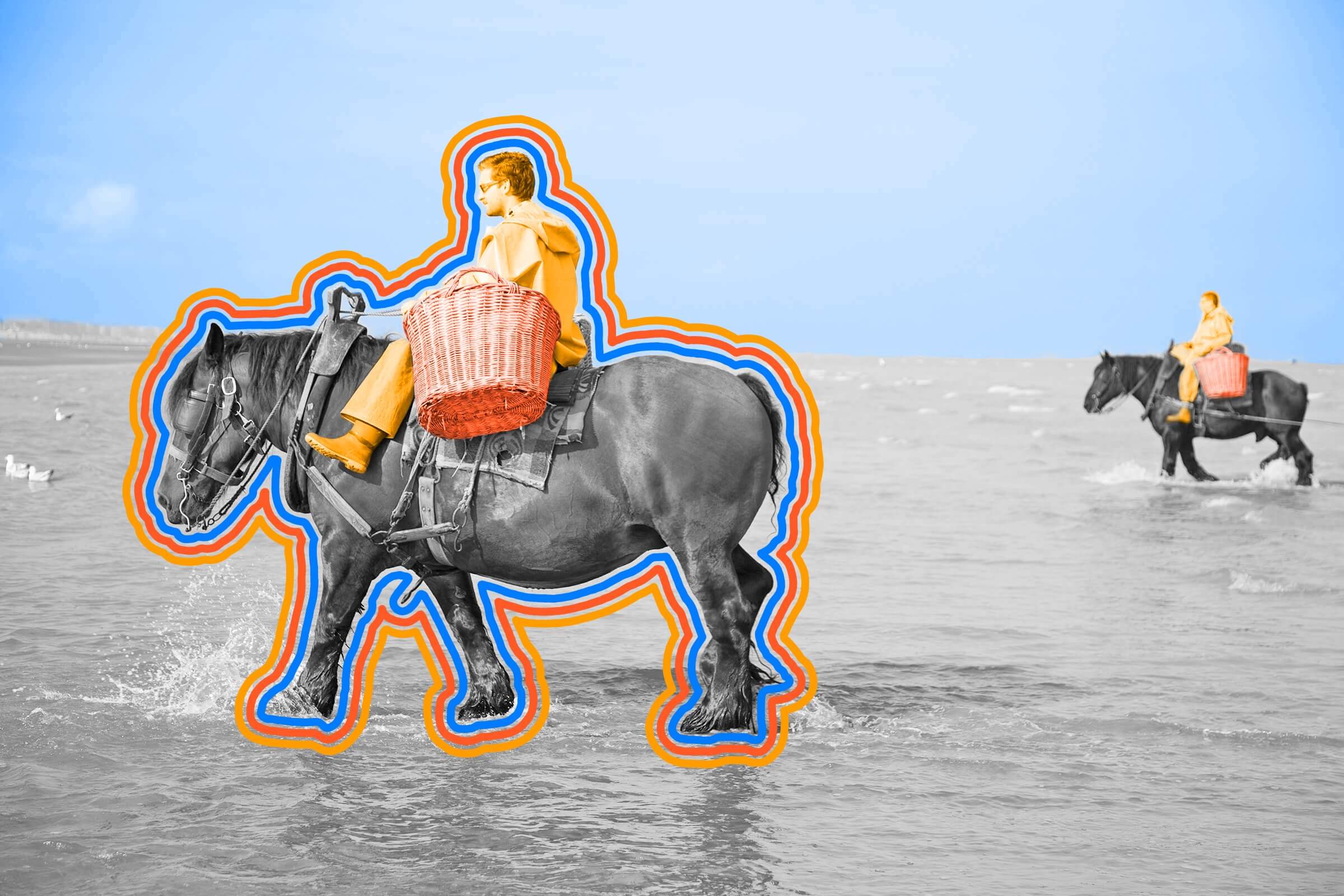 | On the western tip of Belgium's coast, the town of Oostduinkerke keeps alive a tradition more than twice as old as Belgium itself. Since the late 15th century, seaside communities that line the North Sea have practiced a form of shrimp fishing in which horse-riding fishermen, or paardenvisser, trawl the coast's shallow waters to capture tasty crustaceans. About 500 years after it began, the tradition was recognized by UNESCO as part of humanity's intangible cultural heritage. But what was once a common sight in the sea's shallow waters is now a rarity, as only a handful of known paardenvissers still exist. Although the method at its most basic is simply dragging a net behind a Brabant draft horse, the process actually employs some clever physics and mechanics. Attached to each net are two metal-and-wood boards that, thanks to water pressure, keep the net continuously open. A metal chain attached to the front of the net sends shockwaves through the sand, causing shrimp to jump into the trap. As the horse drags the net through the surf, water pressure pushes the catch to the back of the net, which makes room for yet more shrimp. Adorned in their typical bright-yellow oilskin jackets, paardenvissers are often seen along Oostduinkerke's coast during shrimp fishing seasons (from March to May and from September to November), as well as in June when the entire town gathers for the Shrimp Festival. This two-day event is filled with elaborate floats, costumes, and a parade celebrating the towns crustaceous cultural heritage. |