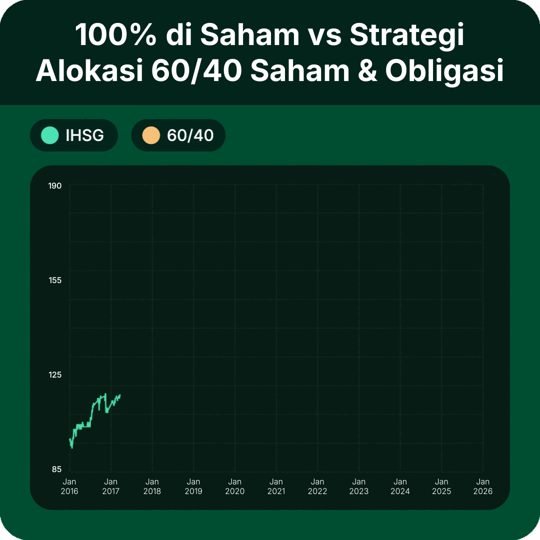 Source: Bloomberg, performa per 1 Januari 2016 - 31 Desember 2025 (1 Januari 2016 = 100) Strategi 60/40 dengan alokasi pada kelas aset saham (IHSG) dan obligasi (ABTRINDO Index) |