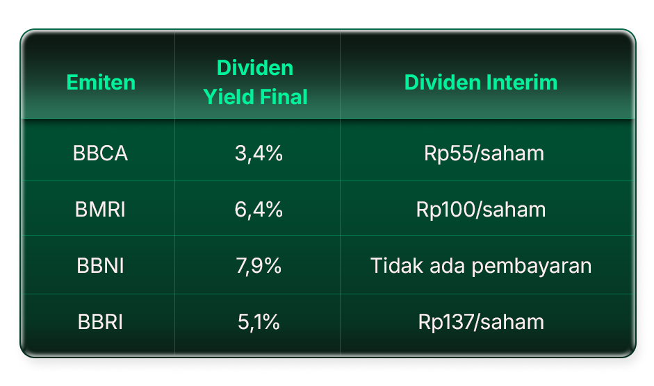 Secara global, sebelumnya harga emas menguat dan indeks dolar AS melemah ditekan oleh berbagai isu, mulai dari arah suku bunga The Fed, isu independensi The Fed, hingga peningkatan defisit fiskal AS. Namun, sentimen tersebut mulai berbalik karena pasar menilai calon ketua The Fed yang baru akan cenderung lebih ketat. Berdasarkan data CME Fedwatch Tool, terdapat probabilitas 33,3% terjadinya dua kali pemangkasan suku bunga The Fed hingga akhir tahun. Untuk Indonesia, market merespons positif penjabaran langkah–langkah dari OJK dan BEI untuk menanggapi concern MSCI, yang menunjukkan urgensi untuk menyelesaikan persoalan ini. Namun, investor tetap perlu memantau perkembangan selanjutnya dengan ketat, di mana OJK dan BEI sendiri menargetkan penyelesaian pada Maret 2026. Kami menilai bahwa investor — setidaknya dalam waktu dekat — dapat berfokus pada saham–saham dengan fundamental solid, terutama yang tidak termasuk dalam indeks MSCI Indonesia sehingga memiliki risiko yang lebih terbatas. Dalam waktu dekat, kita juga akan memasuki musim pembagian dividen (mulai April 2026), sehingga koreksi harga saham bisa dijadikan peluang dividend play oleh investor. Investor dapat mempertimbangkan berinvestasi di Big 4 Banks, di mana Himbara menawarkan dividend yield hingga ~8% dan BBCA sebesar ~4% untuk tahun buku 2026F. Untuk tahun buku 2025, beberapa bank sudah membayar dividen interim, dengan estimasi dividend yield final masing-masing bank per 30 Januari 2026 sebagai berikut: