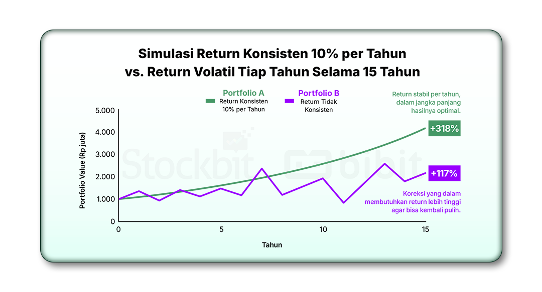 Investasi adalah maraton, bukan sprint. Dalam jangka panjang, return yang optimal bukanlah hasil dari satu kali keberuntungan besar, melainkan konsistensi. |